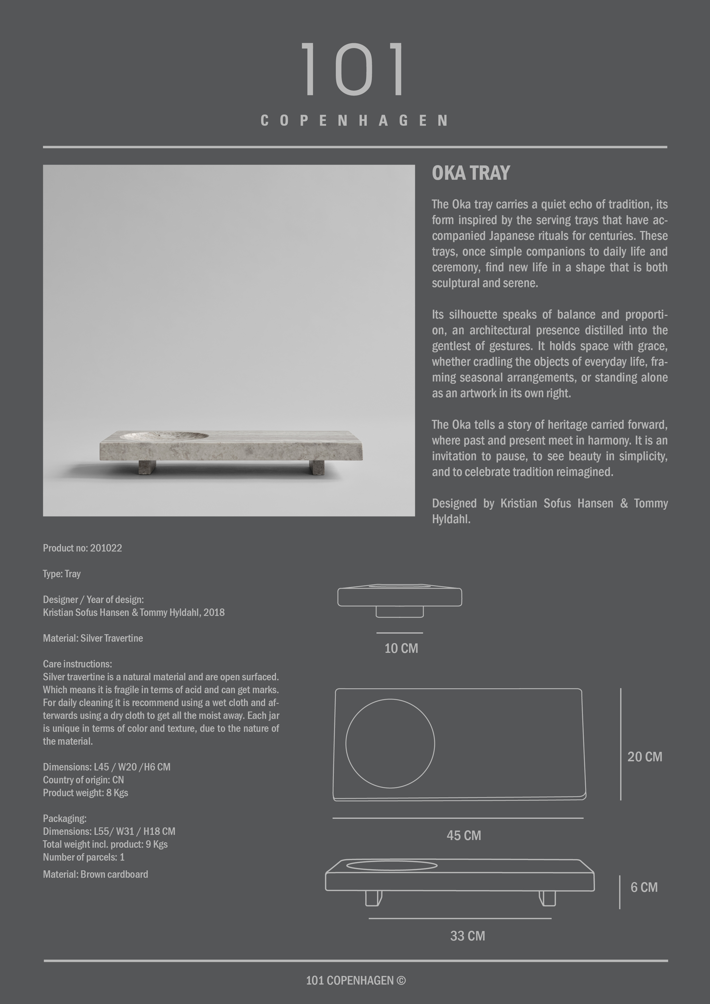 101 Copenhagen Oka Tray Silver Travertine