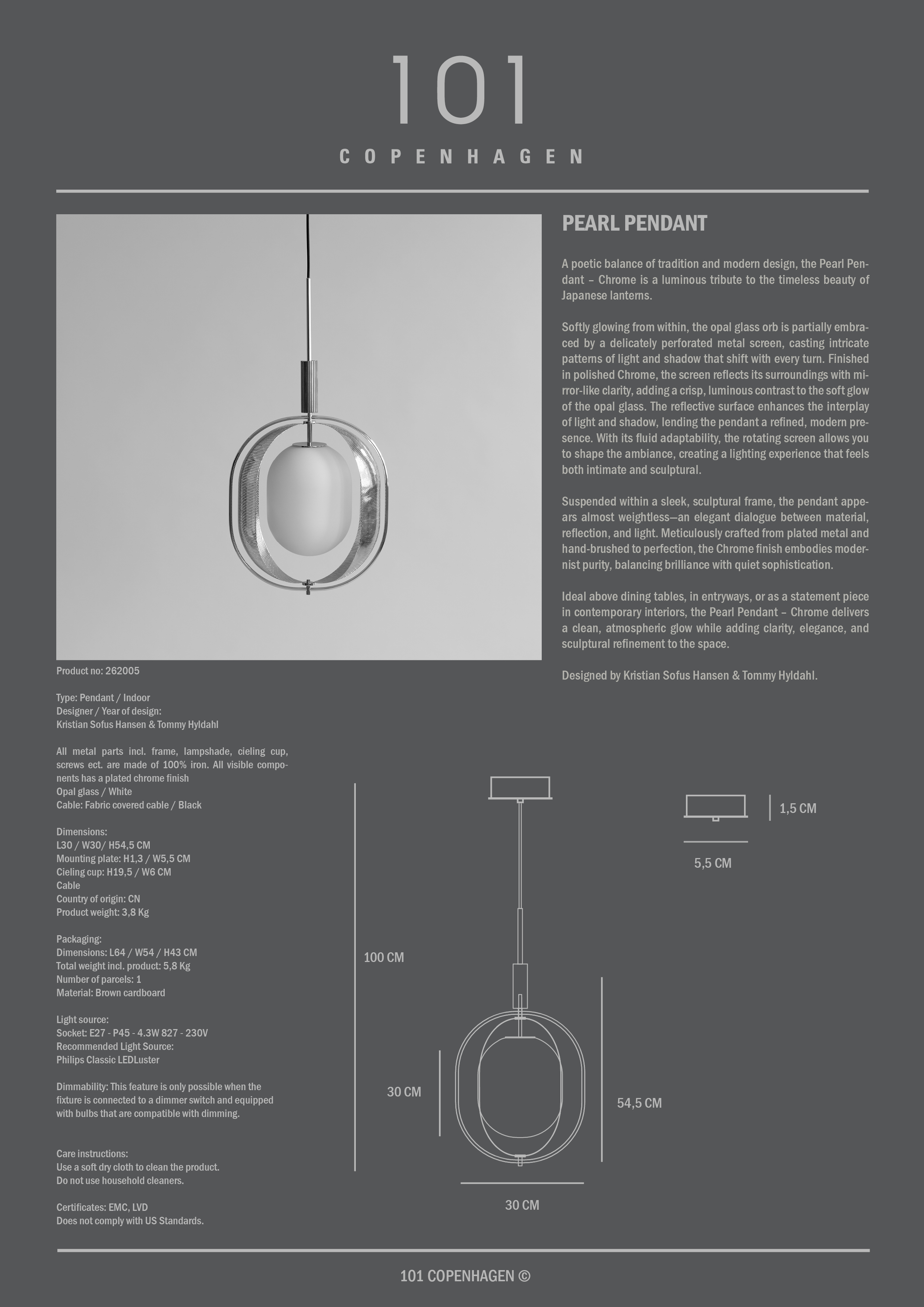 101 Copenhagen Pearl Pendant Chrome