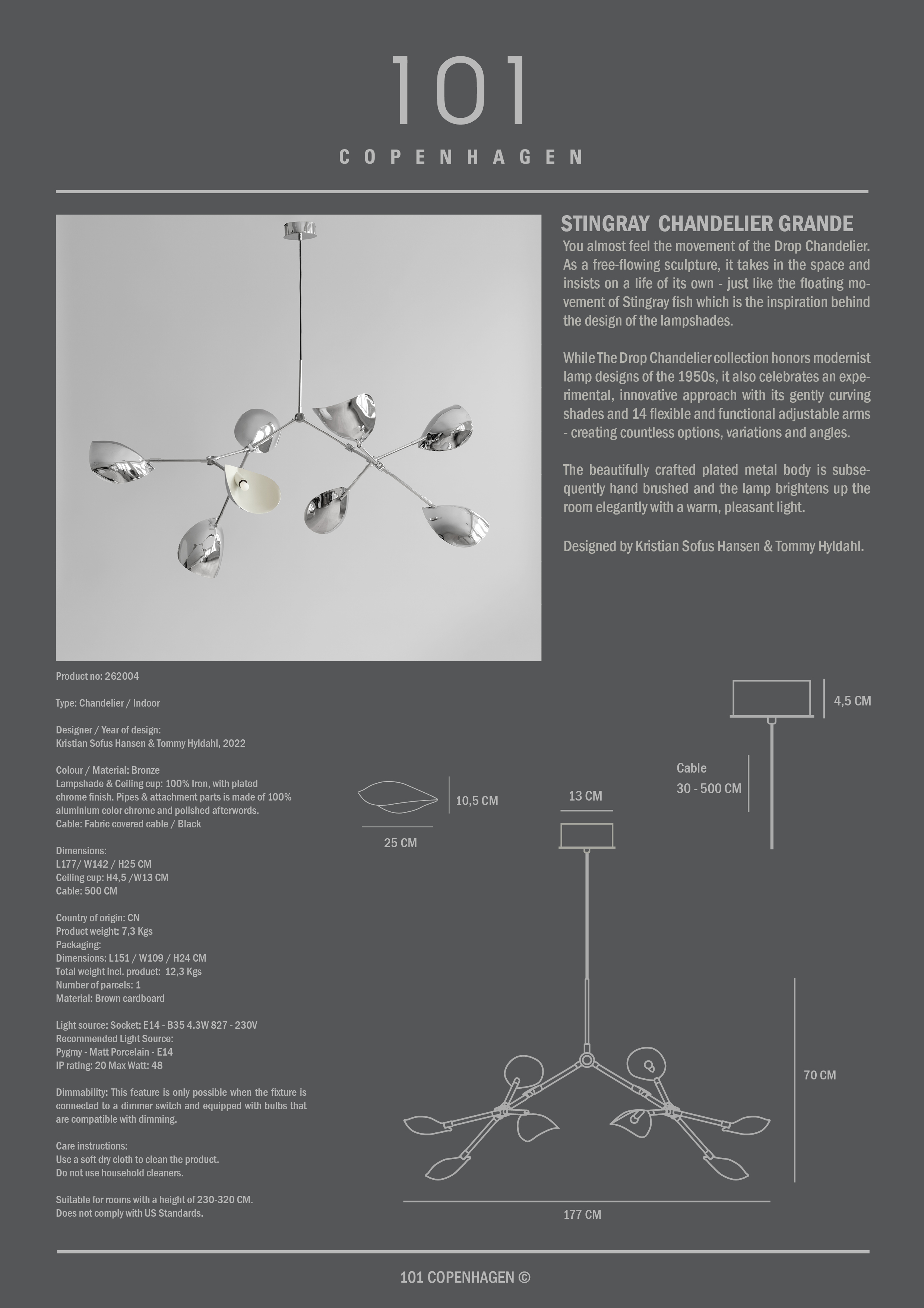 101 Copenhagen Stingray Chandelier Grande Chrome