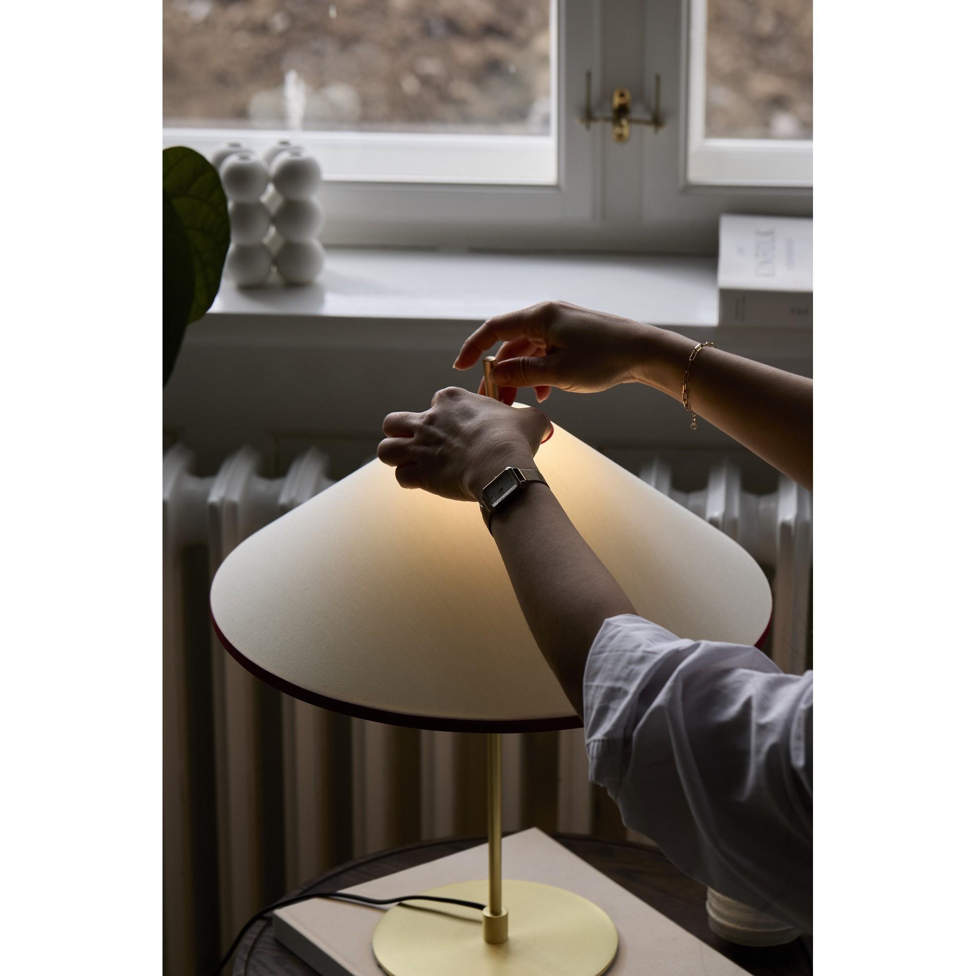 The Tafta the table lamp is a concentrated interpretation of the series' basic idea, where textile and light form a sensual and balanced whole. The design is characterized by its soft appearance and its calm design language, which creates an intimate and pleasant lighting experience. The textile shade dims the light and gives it a warm character, which is particularly suitable for mood lighting on tables, shelves and smaller surfaces. The table lamp appears discreet but complete, and contributes with a clear sense of material that adds depth and warmth to the interior. The Tafta the table lamp is designed to function as a calm focal point in the room, where light and form support each other without taking attention away from the whole.