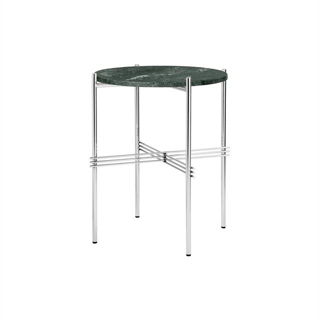 The TS side table from GUBI is a masterpiece of simplicity and elegance, reflecting the best of Scandinavian minimalism, and is the epitome of simple design. The marble top rests elegantly on the slender metal legs with crossing bars that seek stability and balance for the table. Place the beautiful TS side table next to the sofa or armchair in the sofa area either by itself and let its grace shine through or combine it with one of the other sizes from the series, so that it gives an extra dimension with the small height difference. They can be combined in identical colors or they can challenge the surroundings beautifully through a composition of different colored tables. The beautiful TS series was created by the Danish-Italian design duo GamFratesi, who together with GUBI has designed a long line of interesting and beautiful design elements for the home. Among them are recognized designs such as the Bat, Beetle and Masculo chairs, which are just a small selection of the beautiful products GamFratesi is behind.