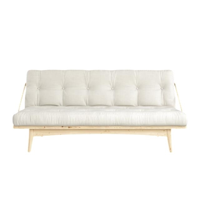 The Folk sofa combines soft, rounded edges with cool, clean lines. The solid frame is made of FSC®-certified pine and exudes the simplicity of Scandinavian design. The metal armrest contrasts with the soft lines of the frame and shows that the sofa is more than just a comfortable sofa. It not only serves as a cozy piece of furniture for socializing with friends, but also functions as a practical bed, ideal for small studio apartments or guest rooms. It is functional and elegant at the same time. With a simple pull, the armrest can be detached, transforming the sofa into a double bed.