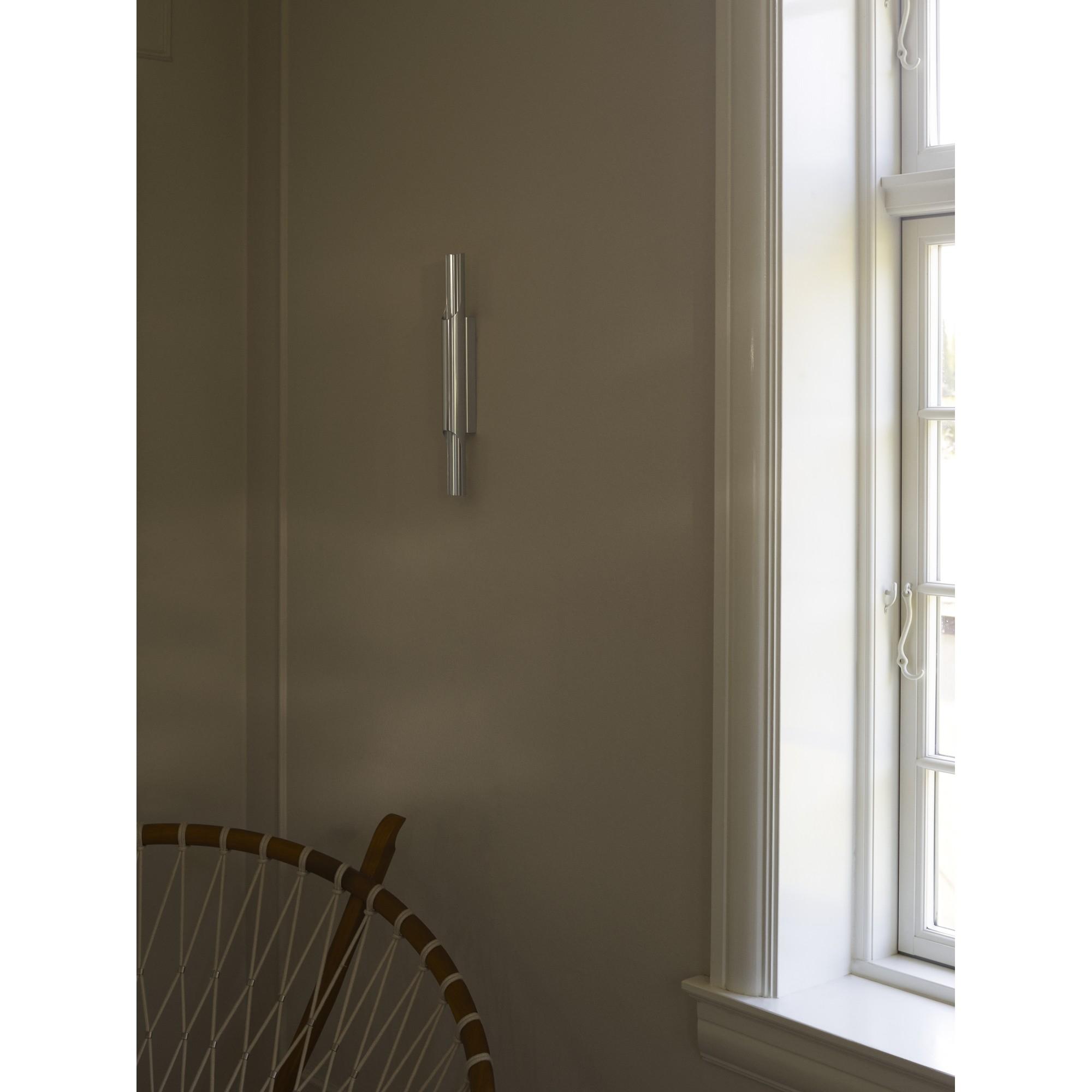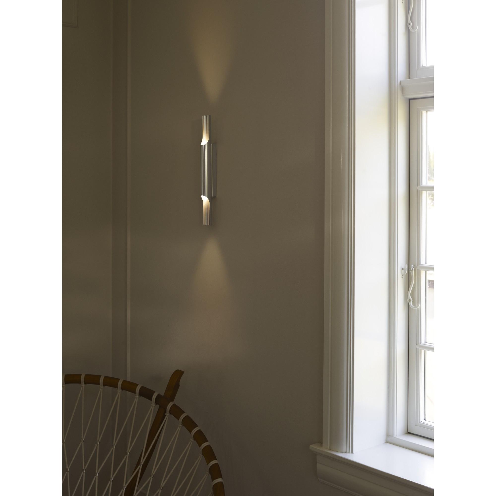 A well-balanced design with a simple, cylindrical shape that creates a calm and graphic expression on the wall and draws clear references to classic Danish lighting design from the 1970s.