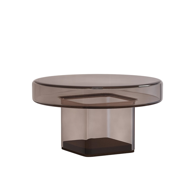 The Naked series from NORR11 appears as a clear and poetic expression of the purity of the material – each mouth-blown glass tabletop rests on a subtle base in dark smoked oak, and the whole reveals no hidden construction or layered components, but just a single, transparent silhouette that shows exactly what it is. The graphic format with the thick glass top and the square column-like base gives the table a distinctive presence that contains both strength and lightness – the glass material visually lifts the weight and lets the light flow through, while the dark wooden base anchors the design with warmth and grounding. The series is perfect as a sculptural element in modern homes, where it can function as a side or coffee table, not only supporting everyday life with functionality, but also adding character and reflection to the interior. With Naked you get a piece of furniture that, with its honest aesthetics and uncompromising material quality, invites calm and openness – a table that does not speak overwhelmingly, but speaks clearly and with very few means.